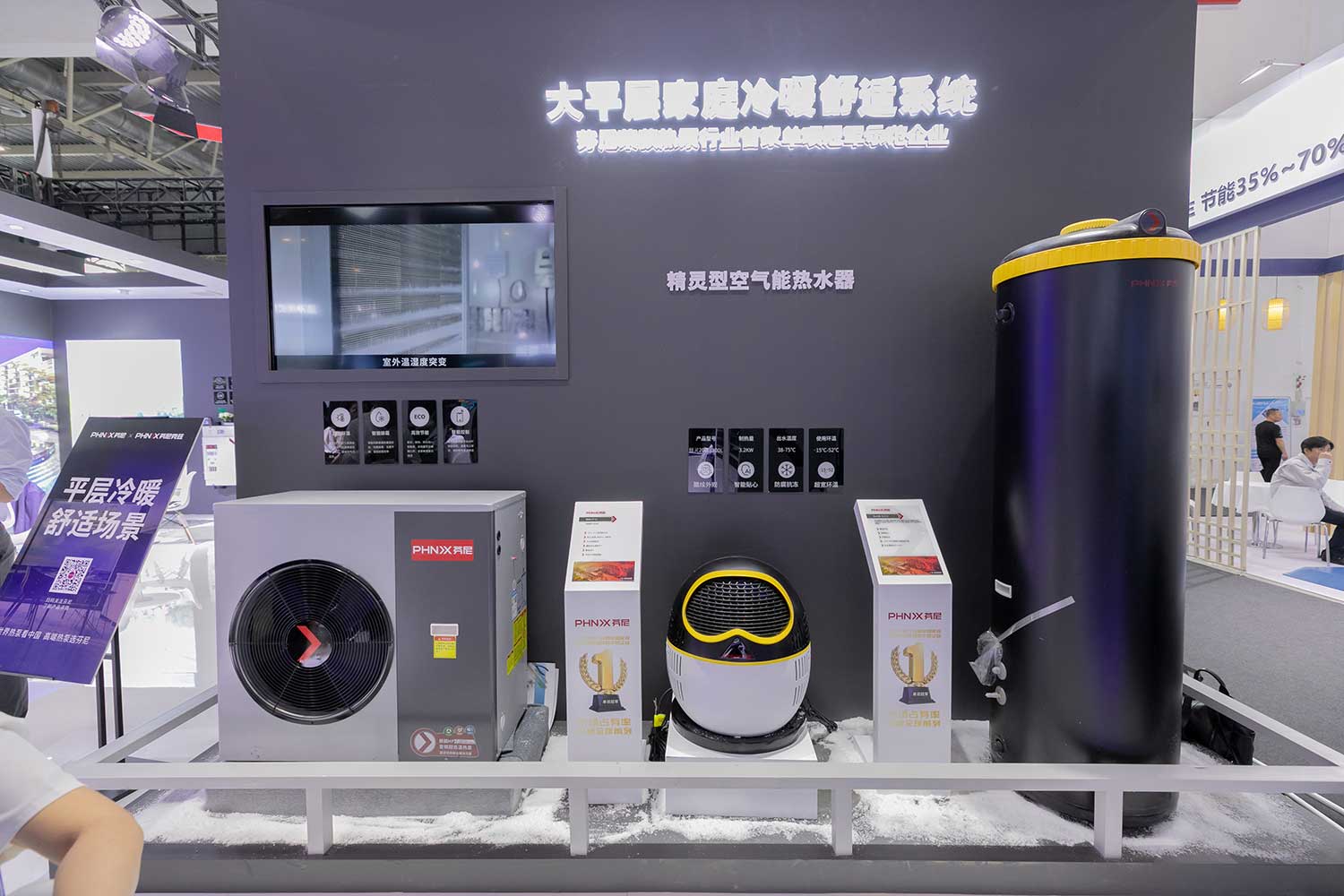 芬尼堅(jiān)持以客戶(hù)為中心,圍繞著大平層、小區(qū)、別墅、酒店、學(xué)校等多個(gè)場(chǎng)景的發(fā)展趨勢(shì)及客戶(hù)的痛點(diǎn)出發(fā),打造了全屋舒適家解決方案、全屋別墅系統(tǒng)解決方案、全屋高端用水解決方案、大平層冷暖家庭冷暖舒適系統(tǒng)、全屋新風(fēng)系統(tǒng)解決方案、無(wú)水分戶(hù)供暖系統(tǒng)、集中供暖系統(tǒng)、潔凈閉式熱水系統(tǒng)、酒店免費(fèi)熱水系統(tǒng)等展示區(qū)。芬尼不僅提供了家用、輕商用至商用全系列的系統(tǒng)解決方案,還通過(guò)優(yōu)質(zhì)的服務(wù)為用戶(hù)提供了全方位的支持。