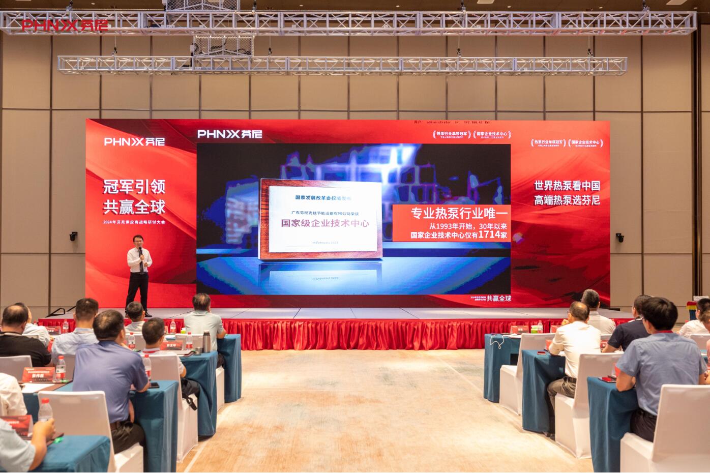 緊接著,廣東芬尼科技股份有限公司董事長宗毅上臺分享,清晰的勾勒出芬尼未來做自主品牌的全球化戰(zhàn)略藍(lán)圖, 傳遞出“冠軍引領(lǐng),共贏全球”的堅定信念,鼓勵供應(yīng)商伙伴與芬尼展開更為深入和廣泛的交流與合作,為未來打造一個互利共贏的全球供應(yīng)鏈生態(tài)系統(tǒng)奠定了堅實基礎(chǔ)。
