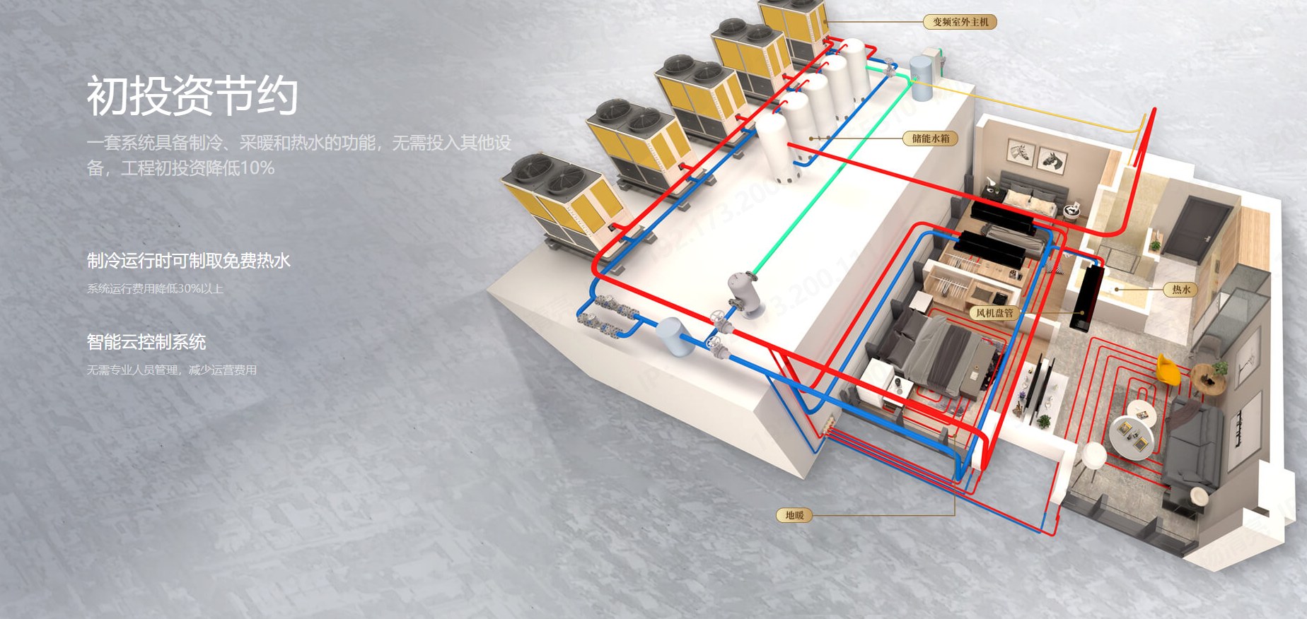 制冷、采暖和熱水靈活多變,初投資降低10%